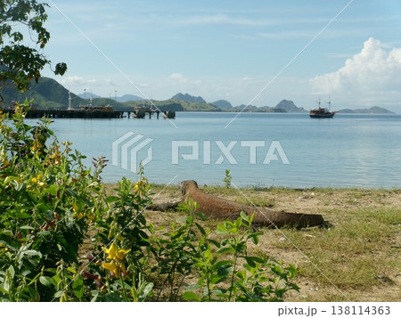 インドネシア コモド島 海沿いにいるコモドドラゴン