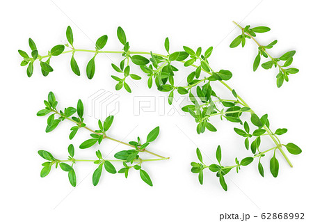 Fresh thyme spice isolated on white background, Top view. Flat lay.