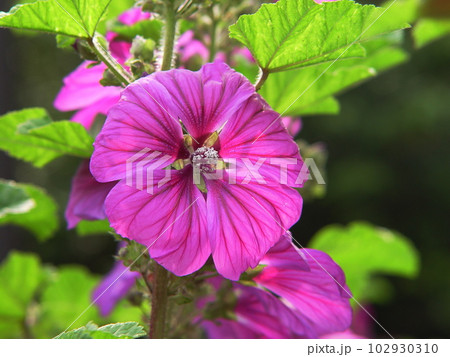 逆光に和む赤紫の花 花(6月)コモンマロウ01V9.16