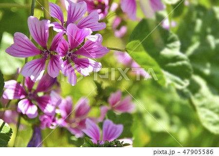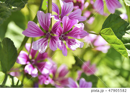 初夏の公園に咲くゼニアオイの紫色の花