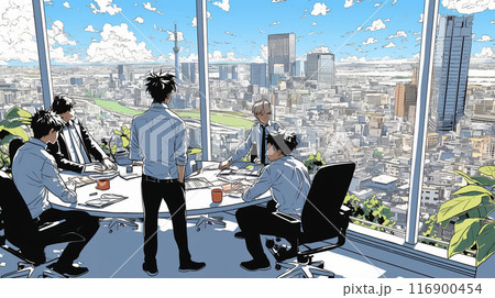 ビジネスストラテジー会議を開いている様子:戦略会議、企業のビジョン設定。