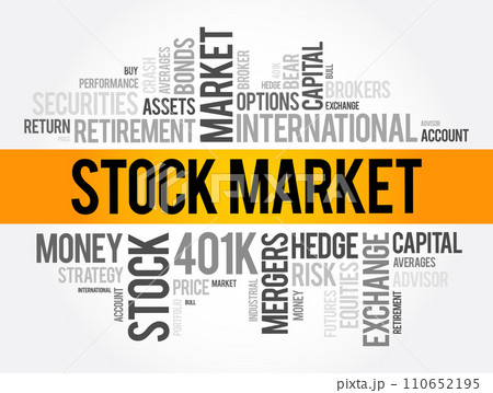 Stock Market word cloud collage, business concept background
