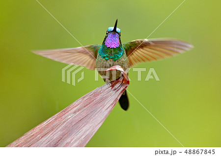Purple-throated Mountain-gem with open wings