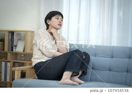 喉が痛い若い女性 体調不良 喉痛 扁桃炎