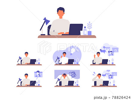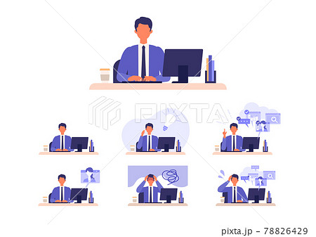 テレワークに追われるビジネスマン マルチタスク、問題解決のイメージ