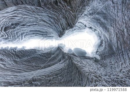 Ice cave with rock formation of water eroded on winter at Natural bridge, Yoho national park, Canada