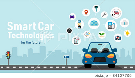 スマートカー・カーテクノロジー ベクターバナーイラスト