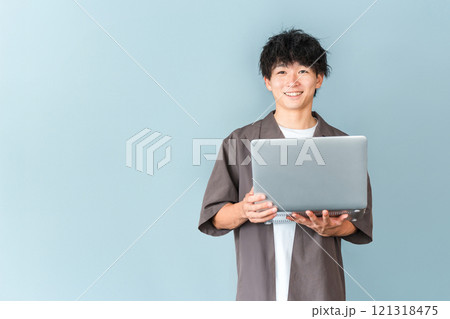 パソコンを持つデジタルネイティブ世代の若い男性(信頼,安心)