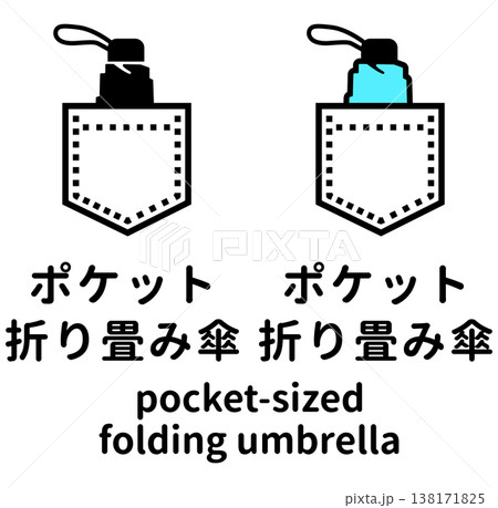ポケットサイズの折り畳み傘 機能説明アイコンセット