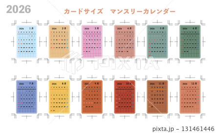 2026年 縦型カードサイズ マンスリーカレンダー(日本語版)