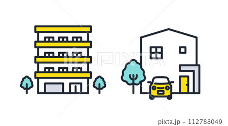 マンションと戸建てのシンプルなベクターアイコンイラストセット素材