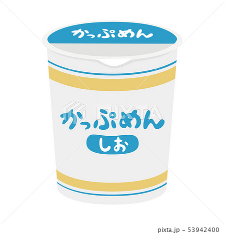 カップ麺のイラスト。コンビニで売ってる塩味のインスタントラーメン。お湯を入れて約3分で出来上がり。