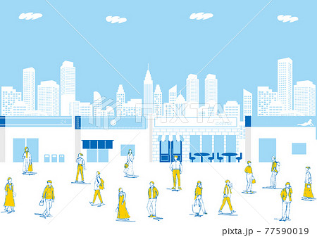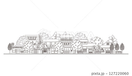 日本の町並みのイラスト. 日本の春. 塗り絵.
