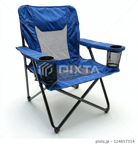 Portable blue camping chair with mesh back and drink holders for outdoor activities and relaxation