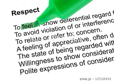 Highlighted word feel for Respect with green pen over white.