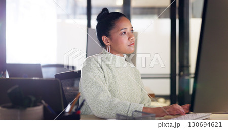 Business, woman and typing on computer for SEO, KPI or report online marketing strategy, research or review of website. Internet, advertising and writing social media, post or employee in Puerto Rico