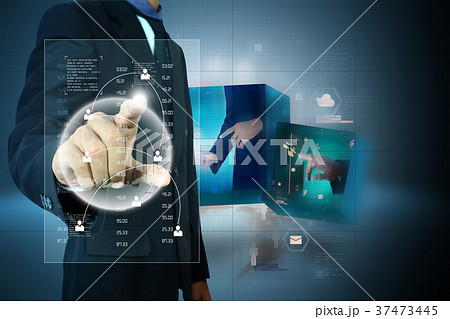 Search advertising. Internet online searching engine selective focus. Hand touching computer for data optimization browser webpage technology internet networking. Blured business concept.