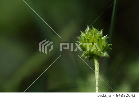 自然 植物 ケキツネノボタン、金平糖のような姿の集合果。トゲトゲの一つひとつがそう果