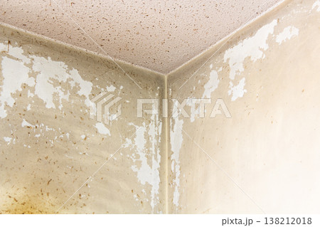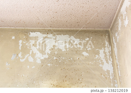 キッチンのコンロ熱と油汚れで激しく剥離した天井・壁のペンキ塗装(住宅の劣化)1