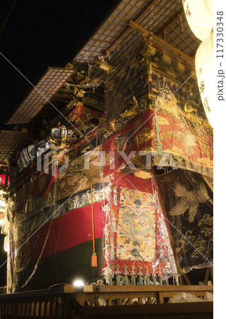 祇園祭 宵々山の夜 蟷螂山の提灯に照らし出される西洞院通り