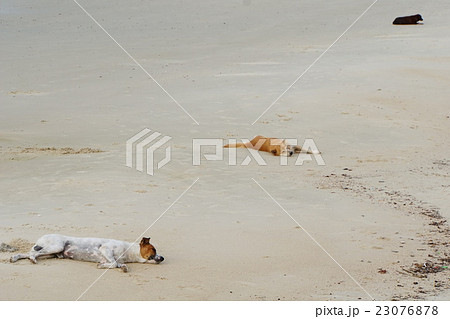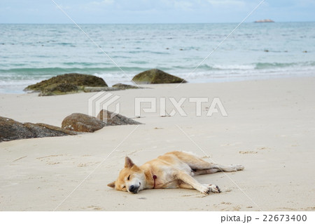 Dog lying on the Beach(ビーチで寝そべる犬)