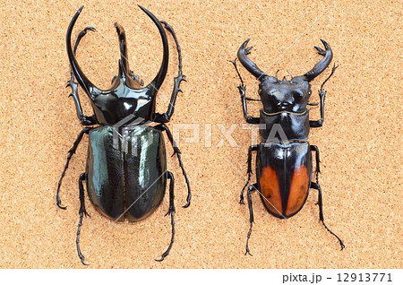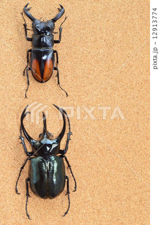 コーカサスオオカブトとセアカフタマタクワガタ コルク背景