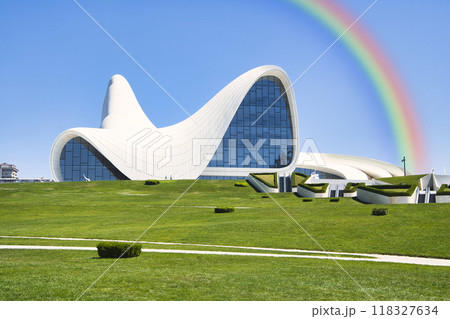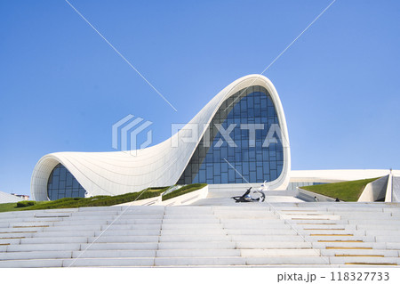 ヘイダル・アリエフ・センター上空を飛行する飛行機