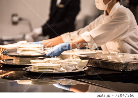 フレンチのキッチンで働くシェフの素材画像