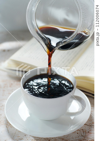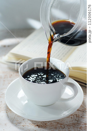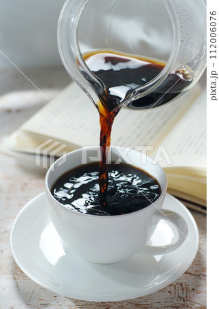コーヒーカップにコーヒーを注ぐ 読書中のブレイクタイム