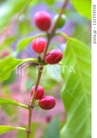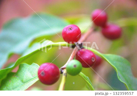 コーヒーノキに実ったコーヒーチェリー コーヒーの実