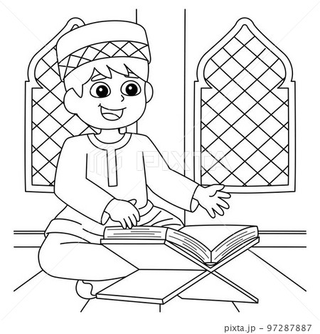 Ramadan Muslim Boy Reading Quran Coloring Page
