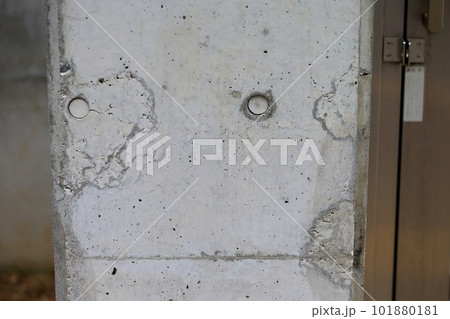 コンクリート打ちっ放し仕上げ外壁コールドジョイント補修ピーコン跡背景壁紙素材concrete