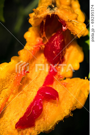 食品 完熟したゴーヤの甘い赤い種