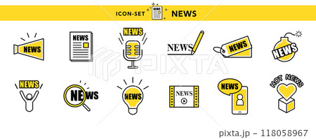 メガホン、マイク、虫めがねなどニュース・お知らせのアイコン・イラスト素材セット
