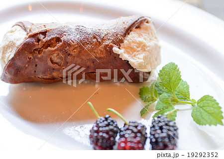 ベネチア本島のショーウィンドウで見つけた伝統菓子カンノーロ