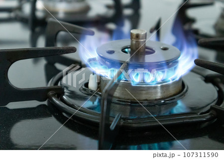 火の付いたガスコンロ