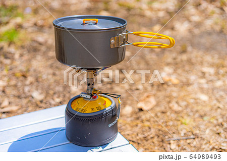キャンプ素材 ガスバーナーとクッカー