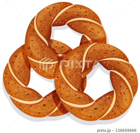 Three Crispy Turkish Simit Rings in Vector Illustration