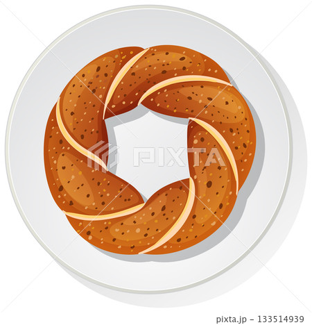 Twisted Turkish Simit Bread Vector Illustration