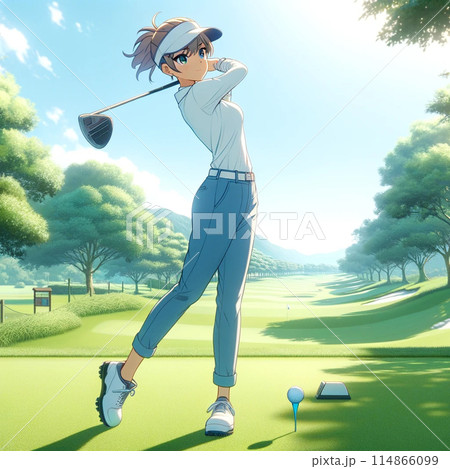 ゴルフ を プレー する 日本人 女性 ゴルファー 【 夏 秋 golf の イメージ 】