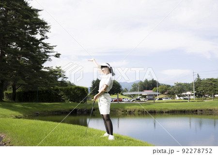 ゴルフ を プレー する 日本人 女性 ゴルファー 【 夏 秋 golf の イメージ 】