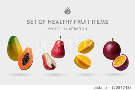 一組3D健康水果向量道具集:木瓜、蓮霧、楊桃、百香果