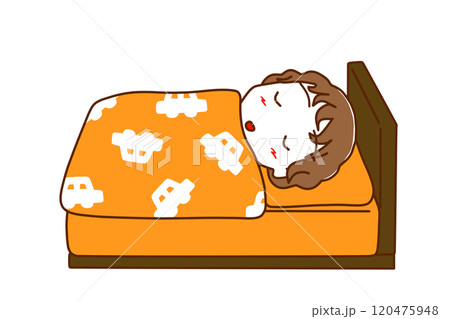 ベッドでぐっすりスヤスヤと眠るアフリカ系少年