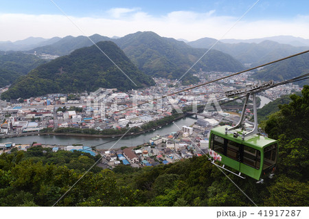 寝姿山山頂駅からの眺望 下田ロープウェイ(寝姿山ロープウェイ)と下田の街並み コピースペース