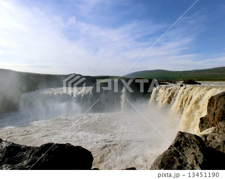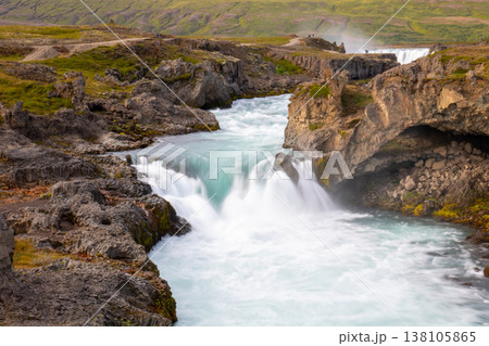 北欧の島国アイスランド共和国北部 スキャルファンダフリョゥト川を流れ落ちるゴーザフォス