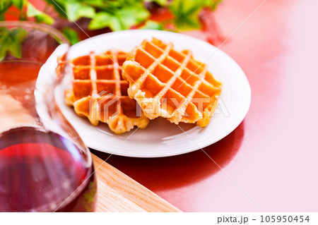 ベルギーワッフル で スイーツ タイム 【 洋菓子 の イメージ 】