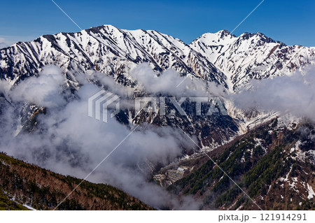 残雪の立山黒部アルペンルート 一の越から南の北アルプスを臨む