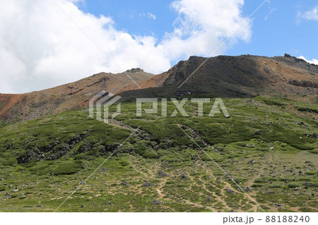 〔長野県/岐阜県・8月〕二の池ヒュッテ近くから眺める、御嶽山の広大な平原(サイノ河原)