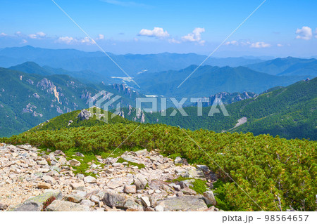 長野(山梨)の金峰山に向かう賽の河原(さいのかわら)から北側の眺望