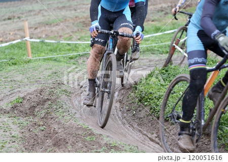 森の中を走る自転車レーサー達(自転車レース シクロクロス)